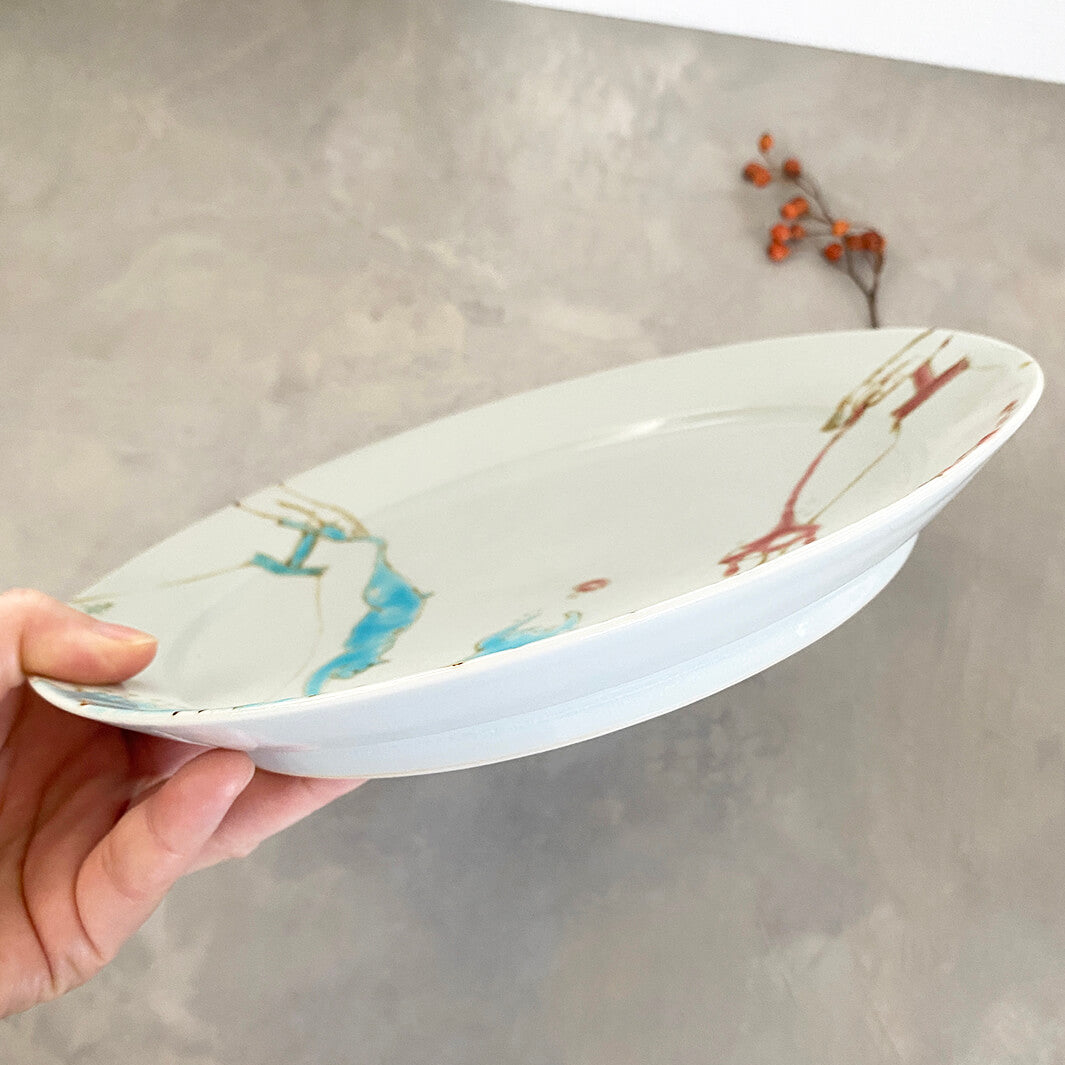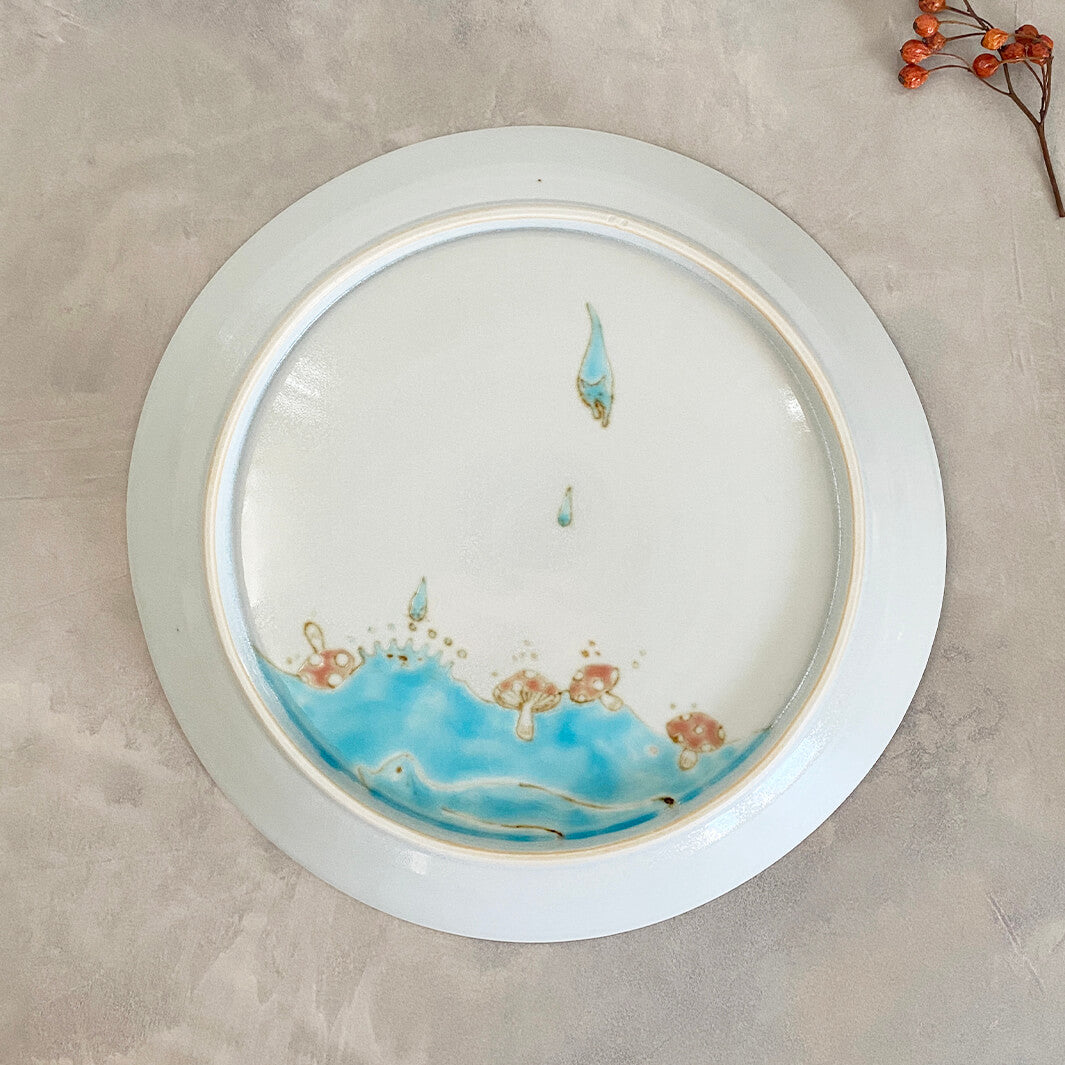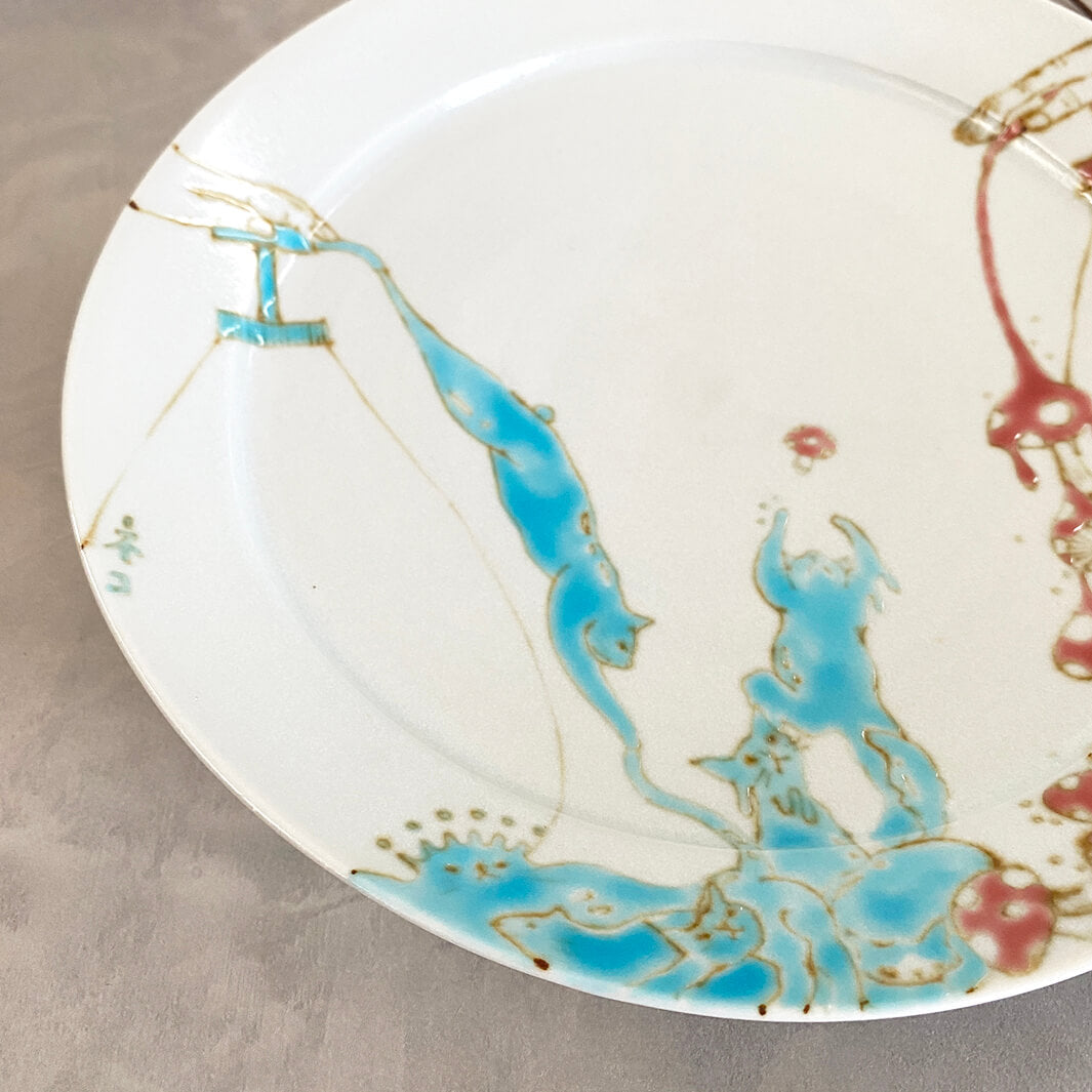 ユニークなモチーフ「液体」が見事にお皿というキャンバスの上に描かれて、大変美しい作品になっています。裏面もぜひご注目ください。