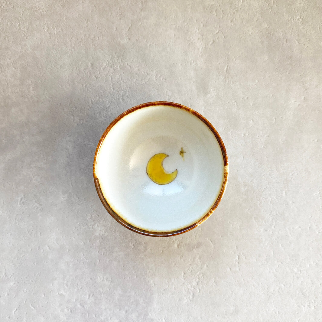 鳥の中でもフクロウが好きで、器にフクロウを描きたいと思いまずモチーフとして選びました。そして器を作っている時間が主に夜なのと、フクロウとも相性が良いことから月もモチーフとして選びました。