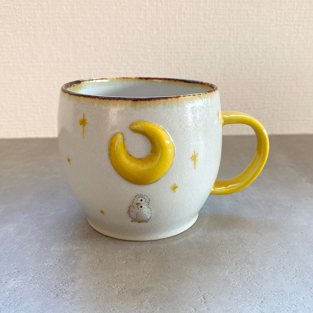 「フクロウ」と「月」を主のモチーフとして、可愛らしさの中にどこか神秘的な空気を纏った器たちを生み出しています。日常使いしやすいベーシックな形状に加え、色の組み合わせや展開にも細やかな工夫が込められています。