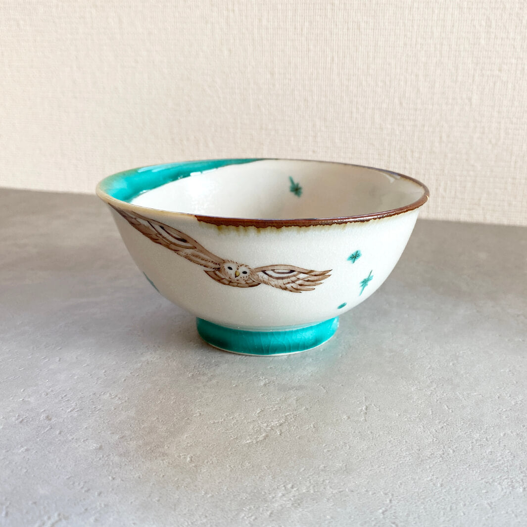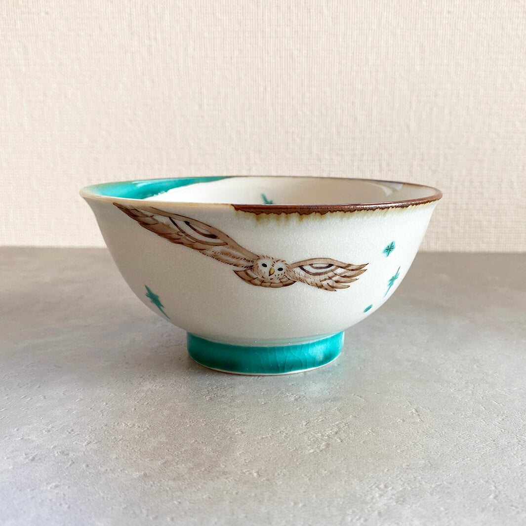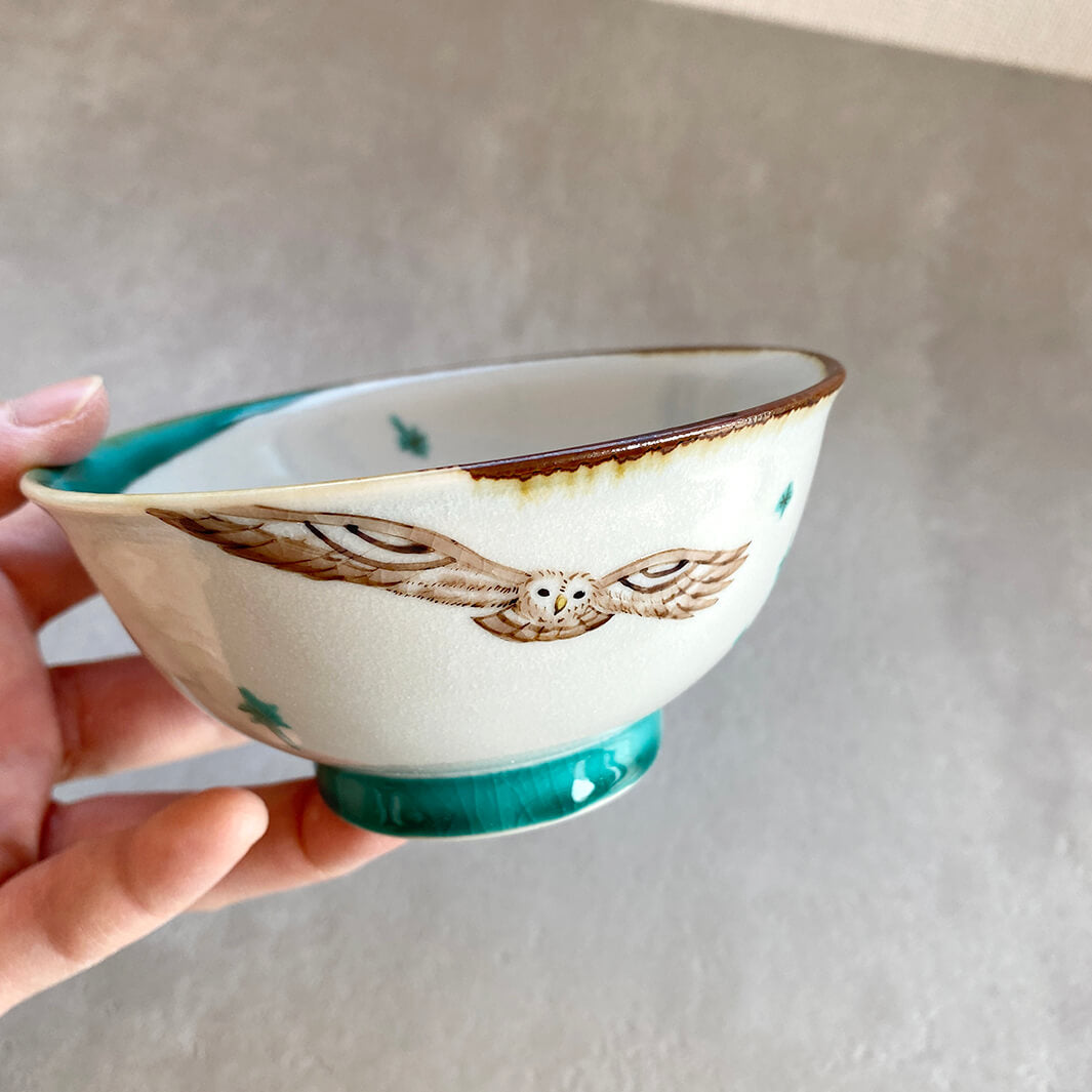 鳥の中でもフクロウが好きで、器にフクロウを描きたいと思いまずモチーフとして選びました。そして器を作っている時間が主に夜なのと、フクロウとも相性が良いことから月もモチーフとして選びました。