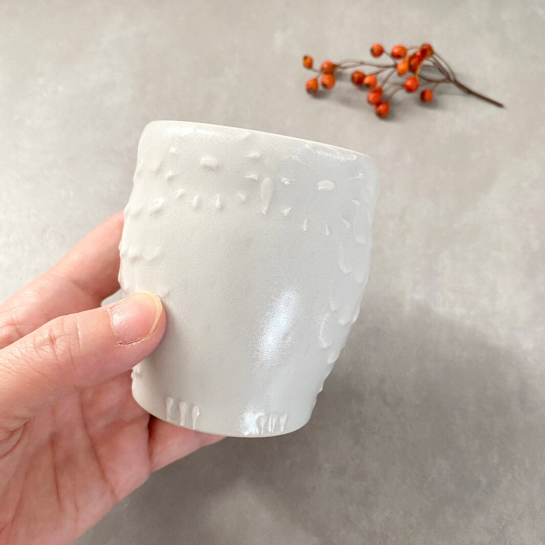 「フクロウ」と「月」を主のモチーフとして、可愛らしさの中にどこか神秘的な空気を纏った器たちを生み出しています。日常使いしやすいベーシックな形状に加え、色の組み合わせや展開にも細やかな工夫が込められています。