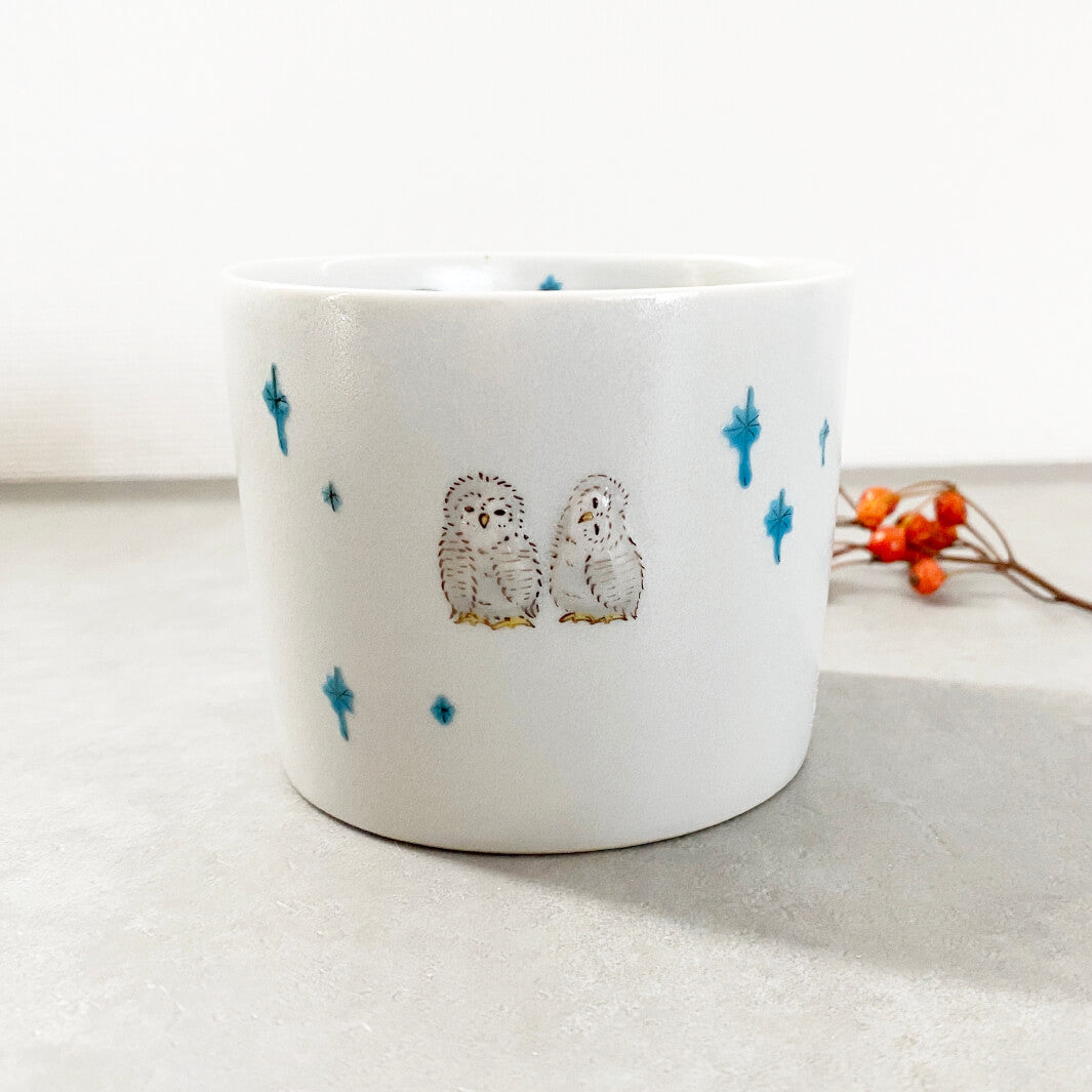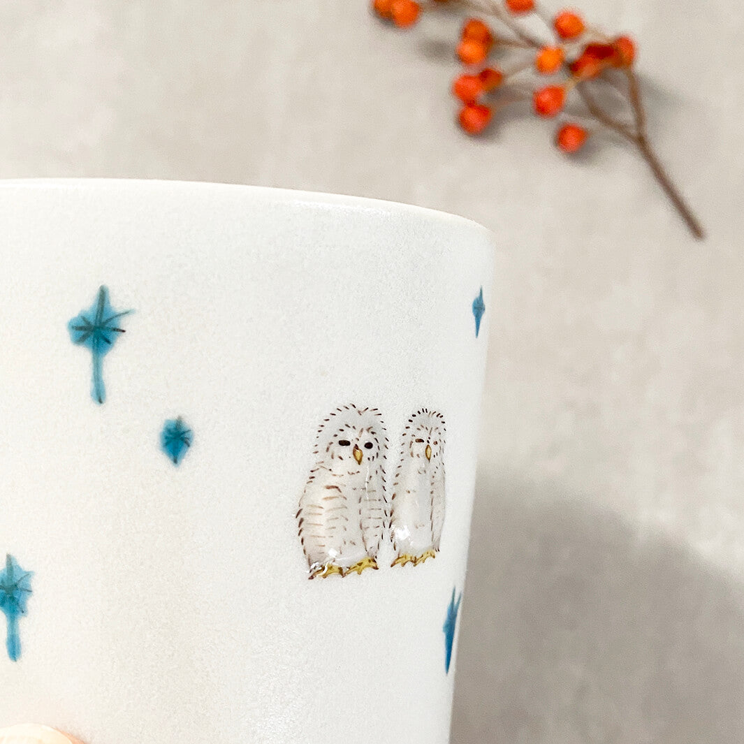 「フクロウ」と「月」を主のモチーフとして、可愛らしさの中にどこか神秘的な空気を纏った器たちを生み出しています。日常使いしやすいベーシックな形状に加え、色の組み合わせや展開にも細やかな工夫が込められています。