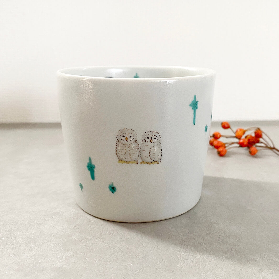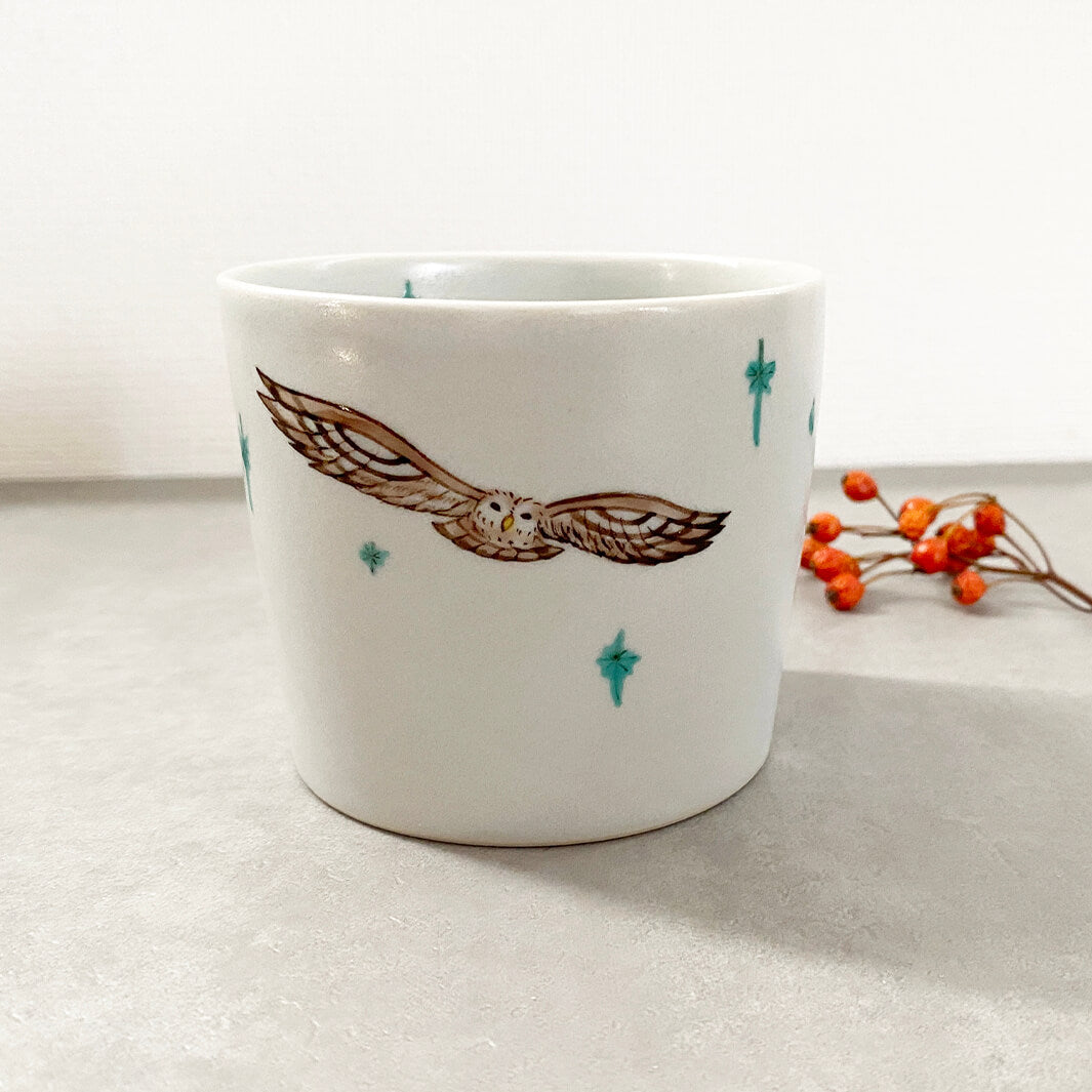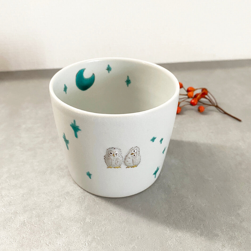 「フクロウ」と「月」を主のモチーフとして、可愛らしさの中にどこか神秘的な空気を纏った器たちを生み出しています。日常使いしやすいベーシックな形状に加え、色の組み合わせや展開にも細やかな工夫が込められています。